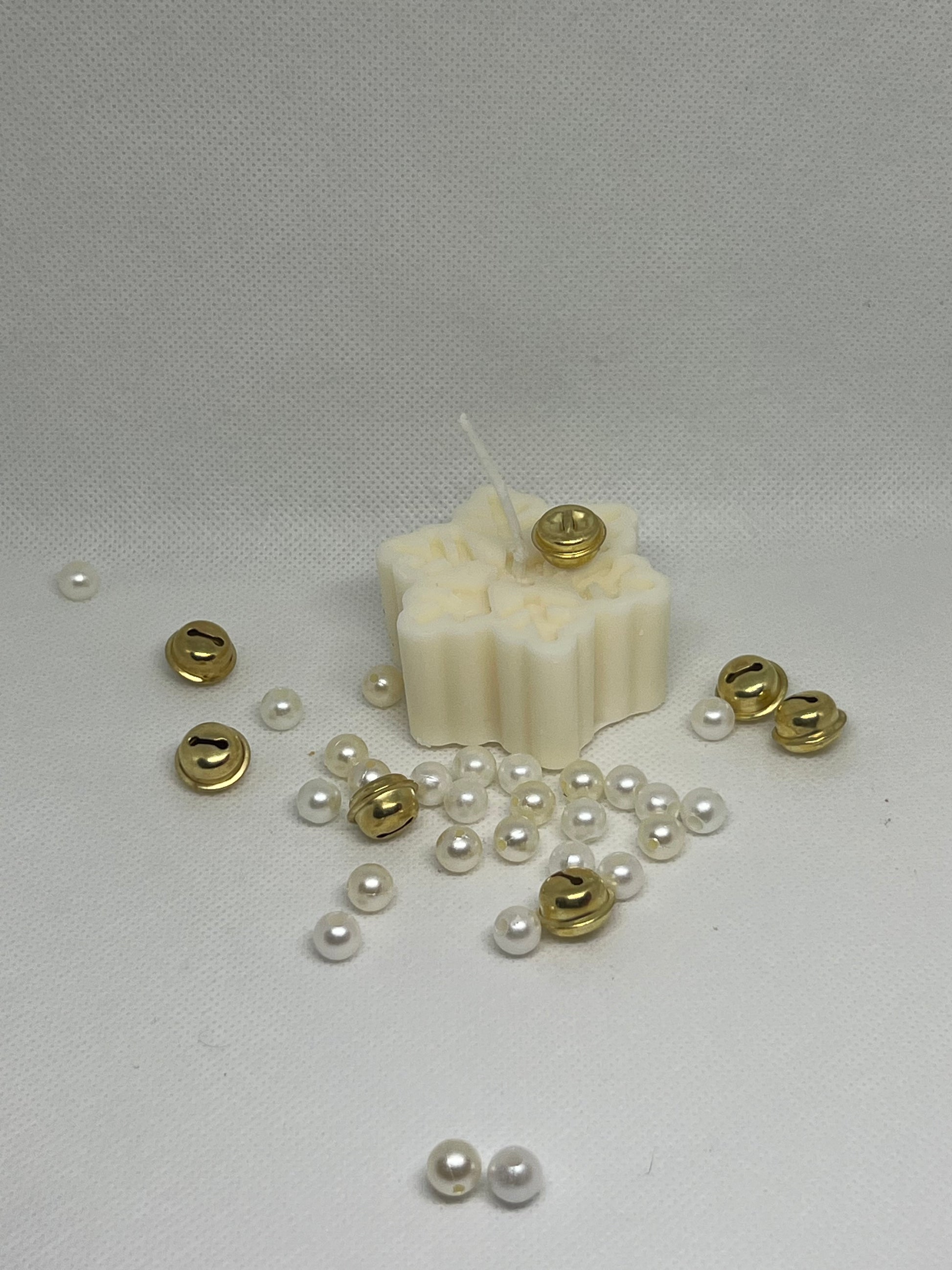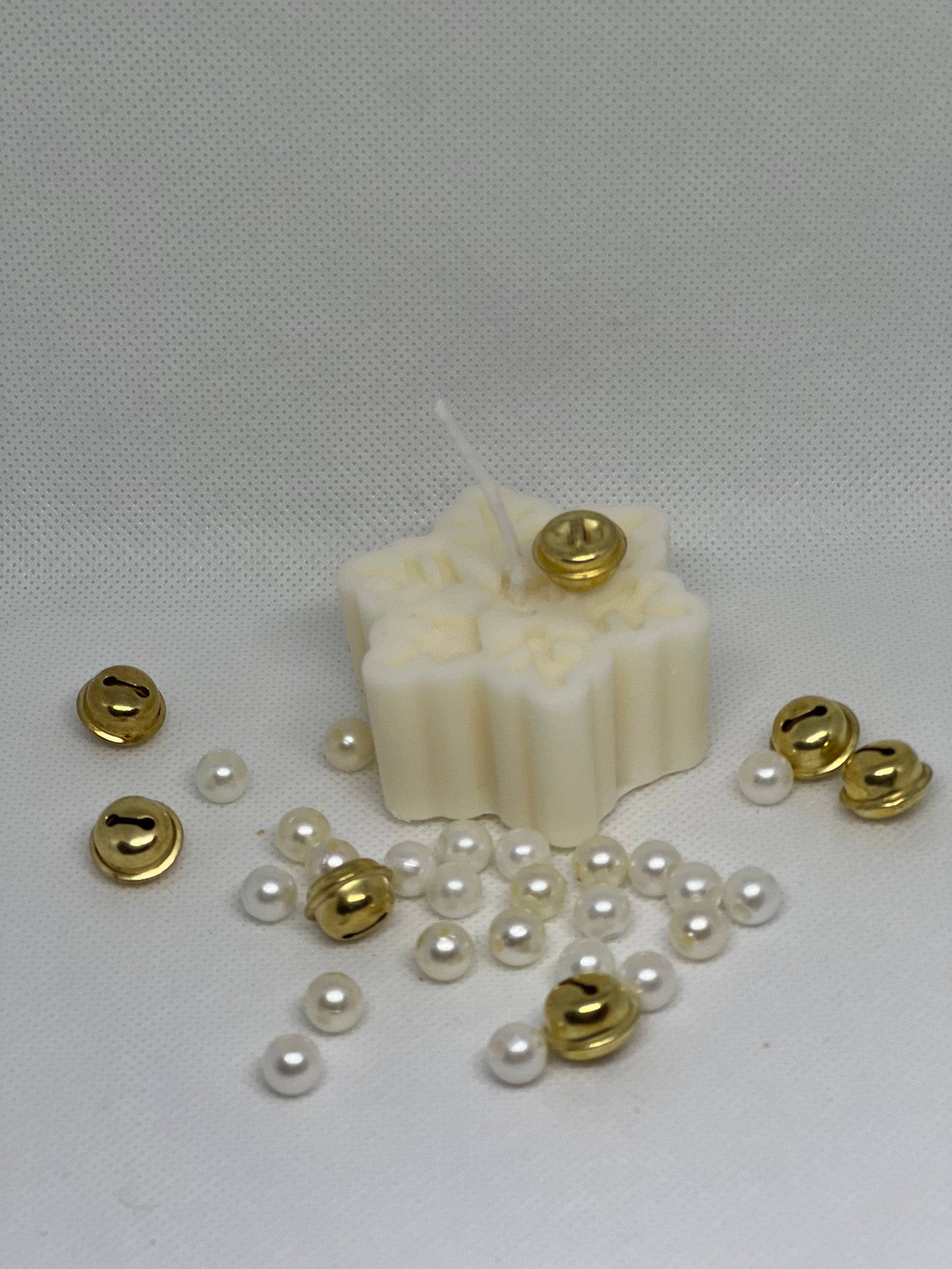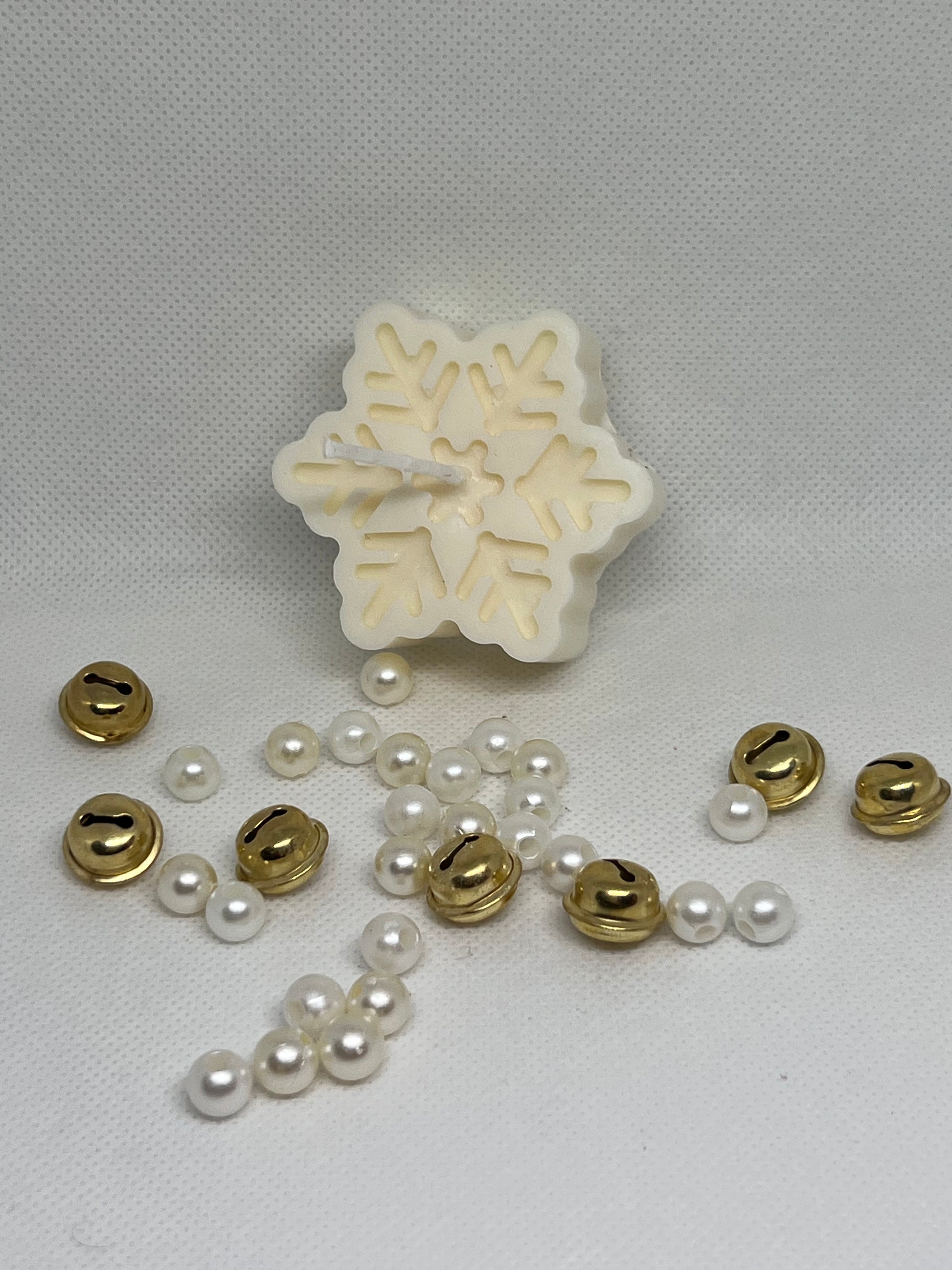 Candela in cera di soia a forma di fiocco di neve. Un elemento comune nella decorazione delle festività invernali, soprattutto durante la stagione natalizia.