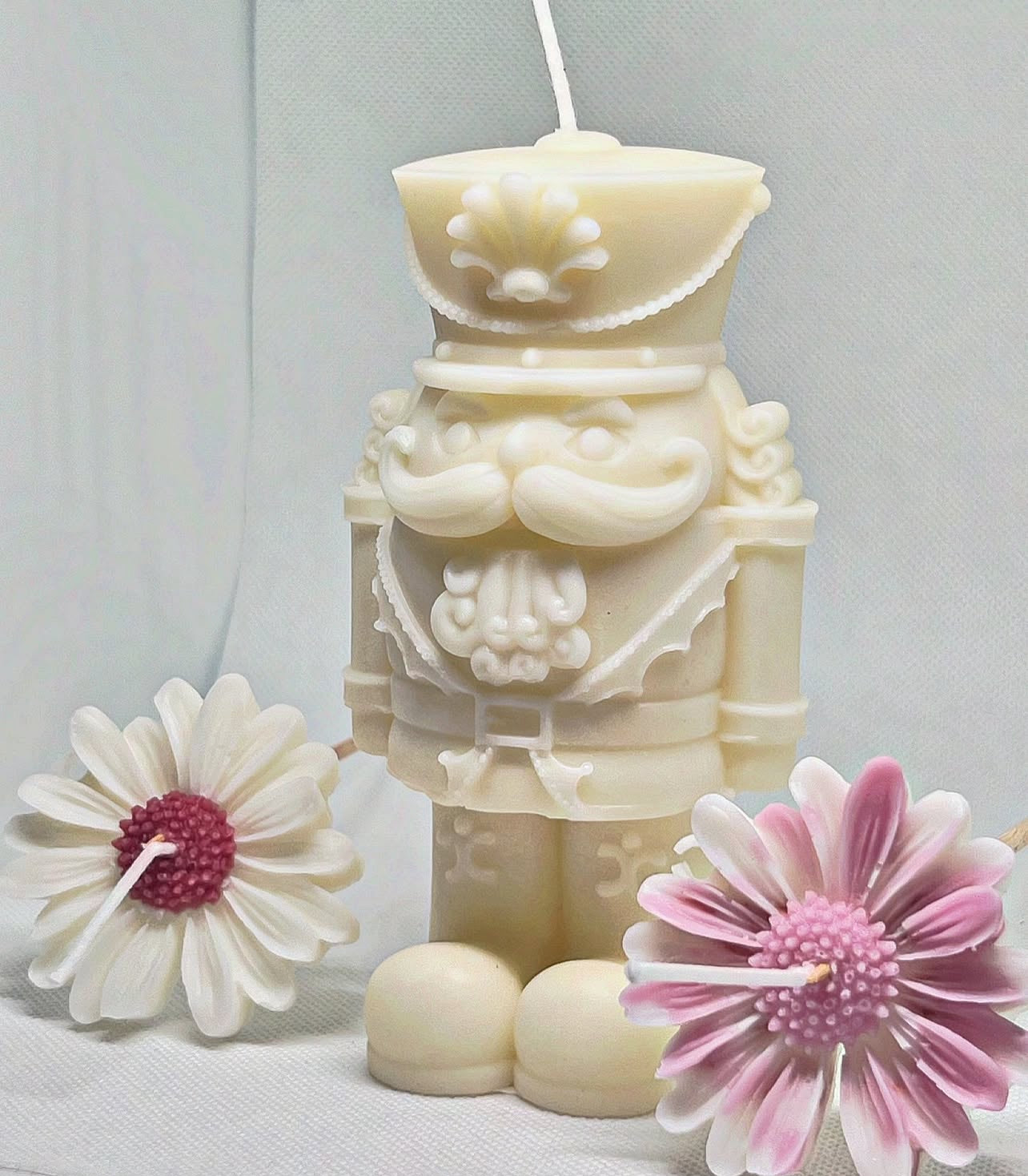 Questa candela a forma di Schiaccianoci è realizzata con cura nei dettagli. Ideale per chi cerca un elemento decorativo dal design accattivante.Realizzata con cera naturale, inodore.